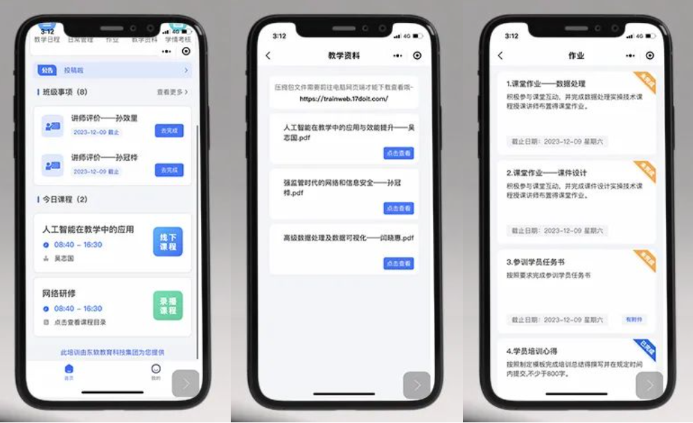 本次培训的过程管理使用九州酷游教育科技集团自主研发的培训信息化管理平台“掌培云”,培训全过程进行信息化管理。学员利用“掌培云”小程序及网页端,完成课程查看、项目评价、资料查询及作业提交等工作,所有内容信息化存档。