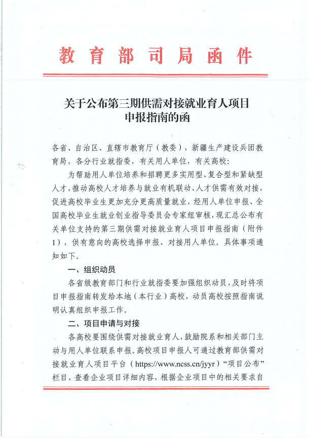 在教育部供需对接就业育人平台“项目公布”栏目查看申报项目详情,根据相关相关要求填写《第三期××公司供需对接就业育人项目申请书》。