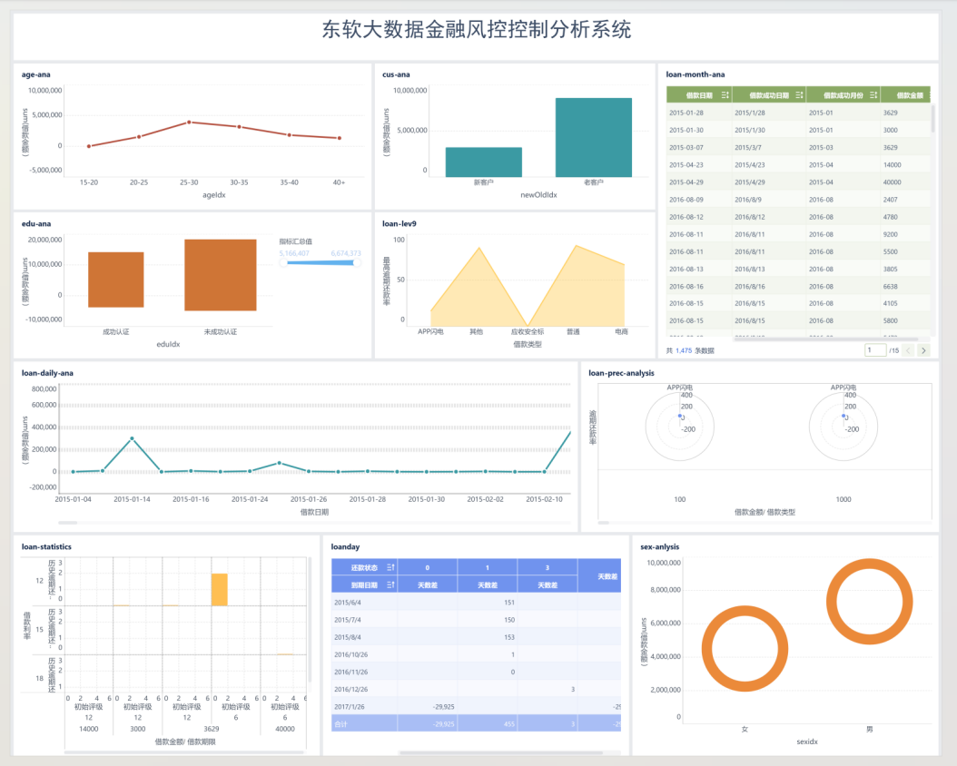 特色优势:项目采用九州酷游金融的真实脱敏数据,进行不同信贷风控业务维度的相关分析,分别得出基于流批不同类型的15组分析数据,具备实用价值。项目分成2个阶段迭代完成,第1阶段采用hadoop-HDFS和Spark实现功能,第2阶段采用Anaconda.Python.ML.Flask实现完整的业务。