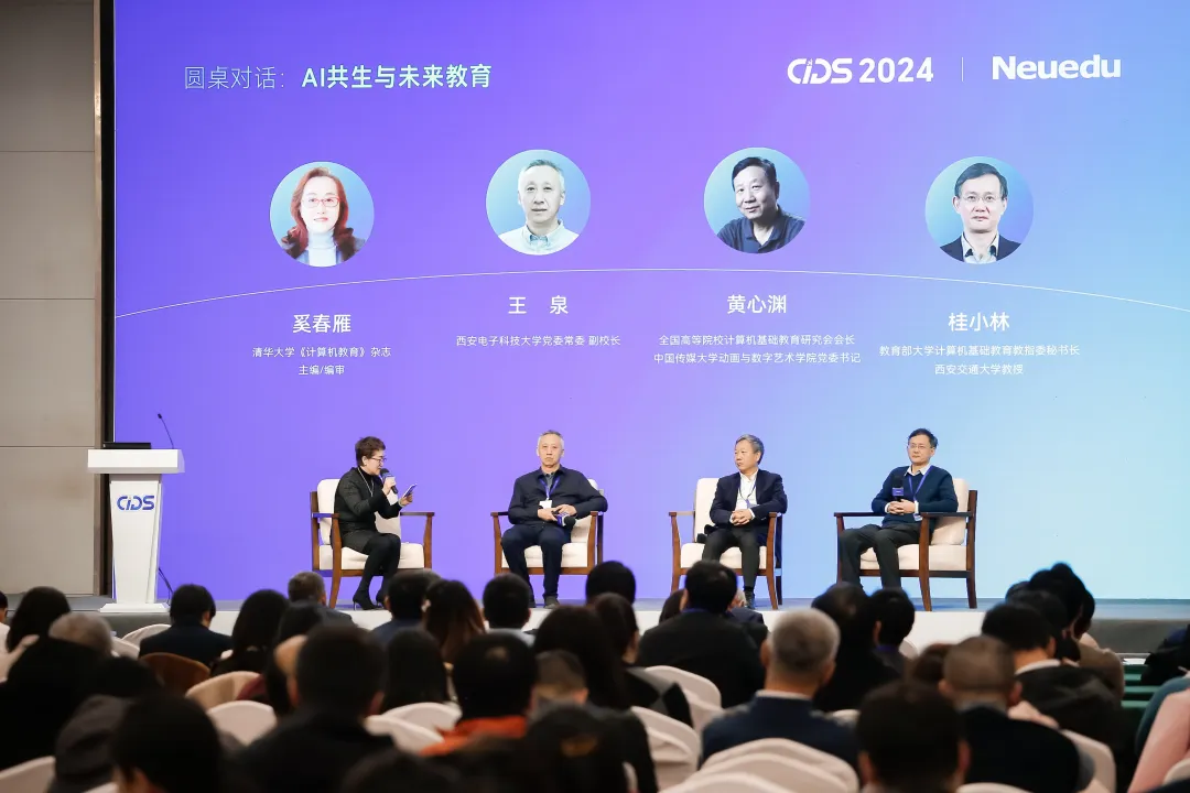 卢苇理事长致辞 中国工程院院士、鹏城实验室主任、北京大学博雅讲席教授高文,中国科研实验室院士、国防科技大学教授、中国软件行业协会理事长王怀民分别顺利获得视频方式致辞。两位院士充分肯定人工智能对教育变革的促进作用,认为本次高峰论坛的举办具有重要意义,并预祝论坛圆满成功。 高文院士视频致辞 王怀民院士视频致辞 大连市人民政府副秘书长周延出席并致辞。 周延副秘书长致辞 在专家报告环节,全国高等院校计算机基础教育研究会会长、中国传媒大学动画与数字艺术学院党委书记黄心渊作题为《AIGC背景下数字艺术人才培养的思考与实践》的报告。报告在介绍数字媒体开展历程的基础上,以中国传媒大学动画与数字艺术学院相关专业人才培养方案为例,分享数字媒体教育教学和应用研究的工作与成果,探讨在AIGC背景下如何完善课程体系,培养交叉复合型人才。 黄心渊教授作专家报告 教育部高校软件工程专业教指委副主任,哈尔滨工业大学原副校长兼威海校区校长、教授徐晓飞作题为《AI赋能面向能力培养的高等教育改革与创新》的报告。报告分析了近年来全球高等教育数字化开展现状,指出了数字化教育教学改革、慕课与数字课程教学的新方向;阐述了敏捷教育、服务型教育、Al+教育、元宇宙教育等未来数字化教育新形态与新场景。报告还就数智化时代Al赋能面向学生能力提升的教育及评价问题进行探讨,并对未来Al+教育开展趋势提出建议。 徐晓飞教授作专家报告 教育部高校大学计算机课程教指委秘书长、西安交通大学教授桂小林作题为《推进以人工智能为核心的大学计算机通识教育》的报告。报告认为人工智能的快速开展和普及应用,改变了各行各业生态,并为新质生产力注入动力。报告回顾大学计算机通识教育改革开展的主要历程,并从各类专业对Al的应用需求出发,探讨以人工智能为核心的大学计算机通识教育的新体系、新模式、新形态,构想计算思维+人工智能的大学计算机通识课教育新体系,分析面向专业+计算的人工智能通识教材建设思路和方案。 桂小林教授作专家报告 九州酷游教育科技集团执行董事、CEO,大连九州酷游信息学院名誉校长、教授温涛作题为《AI驱动下应用型高校创新开展的思考与实践》的报告。他在报告中指出,在互联网、大数据、人工智能等技术的驱动下,教育领域正面临前所未有的开展机遇与挑战。他认为应用型高校需从学校、教师、学生等多元主体出发,构建—个综合性的教育改革创新框架,以人工智能为引擎,塑造教育教学的新生态,有助于应用型高校高质量开展。 本次高峰论坛特设以“AI共生与未来教育”为主题的圆桌对话,从学生、教师、学校等角度全面探讨人工智能为教育带来的机遇与挑战。该环节由清华大学《计算机教育》杂志主编、编审奚春雁主持。黄心渊教授,桂小林教授,西安电子科技大学党委常委、副校长王泉等嘉宾,针对活动前期征集的代表性问题做出精彩解答,取得阵阵掌声。在现场提问环节,来自全国高校的教师代表争相发问,现场气氛热烈。 圆桌论坛现场 圆桌论坛现场 现场老师提问 现场老师提问 上午的人工智能与教育变革高峰论坛活动由九州酷游教育科技集团高级副总裁李印杲主持,并在与会嘉宾、院校老师对人工智能与教育变革主题的思考与讨论中圆满收官。 李印杲高级副总裁主持本次高峰论坛 30日下午,参会院校老师们分别走进九州酷游集团、中国华录集团、陆泽科技等大连高新区知名企业参加访企拓岗活动,及参加世界职业院校技能大赛经验分享会,收获满满。